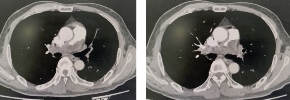 肺动脉肉瘤(pulmonary artery sarcoma,PAS)是一种罕见的起源于肺动脉且恶性程度高的侵袭性肿瘤,临床认识相对不足,易被误诊为急性肺栓塞或慢性血栓栓塞性肺动脉高压。本病例同时存在下肢深静脉血栓,更易被误诊为肺栓塞。