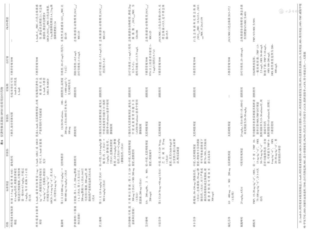 IPFD常用的治疗药物包括多烯类、三唑类及棘白菌素类(表6)。临床用药时需结合其药代动力学(pharmacokinetics,PK)、药效学(pharmacodynamics,PD)特征以及患者的特殊病理生理状况合理选择[39]。两性霉素B脱氧胆酸盐(AmB-D)肾毒性高,两性霉素B脂质体(L-AmB)和两性霉素B胶状分散体(ABCD)肾毒性显著降低,在肝肾功能不全患者中通常无需调整剂量[40]。多数三唑类抗真菌药口服生物利用度良好,组织分布广泛,尤其是肺支气管组织中渗透率较高。伏立康唑、伊曲康唑主要通过细胞色素P450(CYP)酶代谢,并对该酶系统具有抑制作用;泊沙康唑主要经尿苷二磷酸葡萄糖醛酸转移酶1A4(UGT1A4)代谢;而艾沙康唑在肝脏中的代谢程度较低。氟康唑主要经肾脏排泄,需根据肌酐清除率调整剂量,艾沙康唑的排泄途径涉及肝肾两者,相对均衡。需注意的是,唑类抗真菌药物具有潜在的胚胎毒性,妊娠早期应禁用[41]。棘白菌素类药物包括卡泊芬净、米卡芬净和瑞扎芬净,蛋白结合率均大于90%。卡泊芬净、米卡芬净主要通过CYP酶代谢,瑞扎芬净药物相互作用风险较低,其代谢产物主要经胆汁排泄,仅少量经肾脏排出。棘白菌素类在肝肾功能受损患者中安全性相对较好,但妊娠期仍应慎用。老年患者常合并多种基础疾病,使用抗真菌药物时需特别关注肝肾功能变化对药物代谢产生的潜在影响。