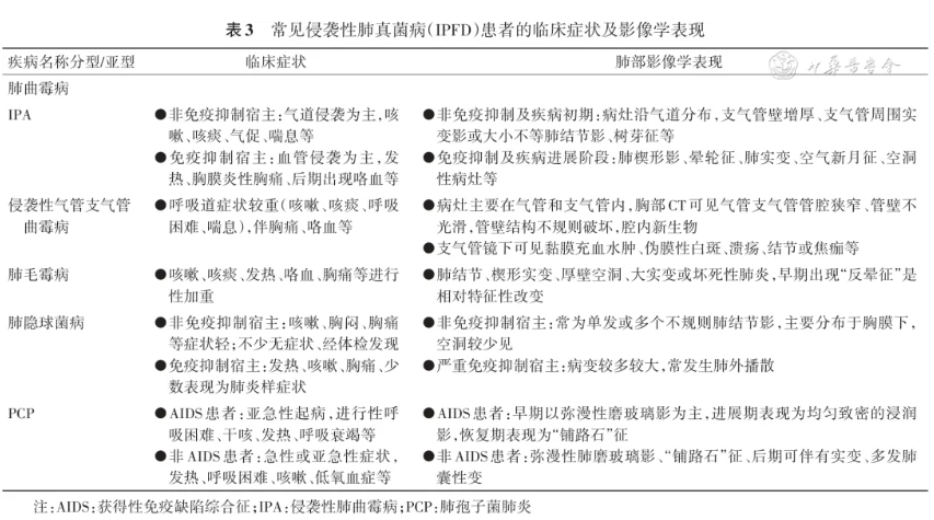 IPFD的临床表现及严重程度与机体免疫状态密切相关,IPFDNIH和免疫抑制宿主IPFD的临床和影像学特征存在一定差异(表3)。