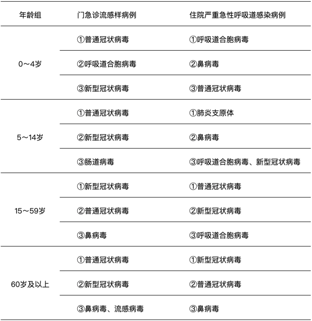 - 住院严重急性呼吸道感染病例呼吸道样本检测阳性率前三位病原体为呼吸道合胞病毒(7.5%)、普通冠状病毒(4.5%)、新型冠状病毒(4.3%)