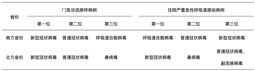 - 新冠阳性率在门急诊流感样病例、成人病例及北方省份住院严重急性呼吸道感染病例中占比继续居首